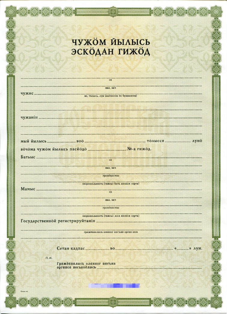 • Документ: Свидетельство о рождении республика Коми